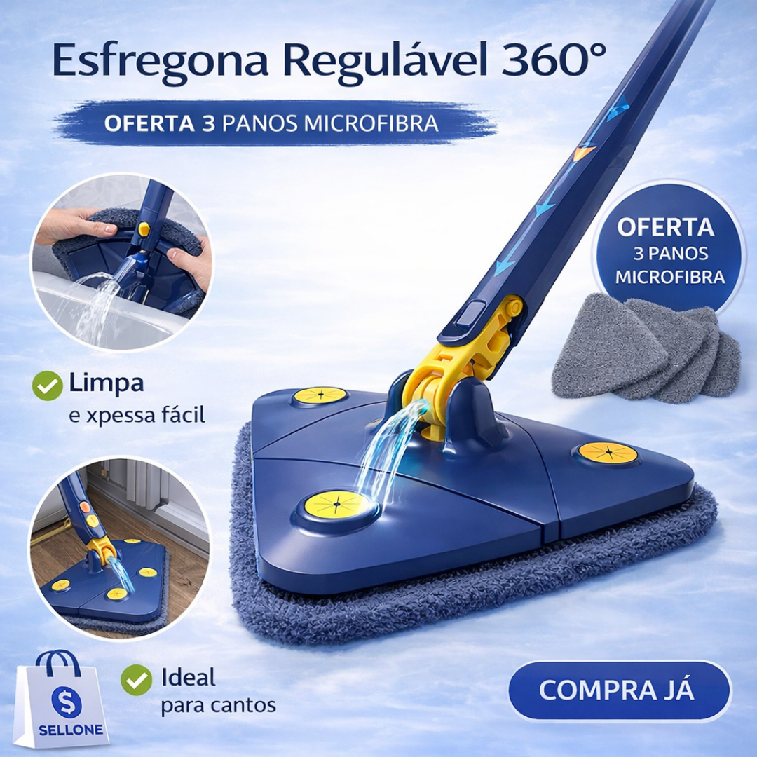Esfregona Regulável 360° + OFERTA 3 PANOS MICROFIBRA