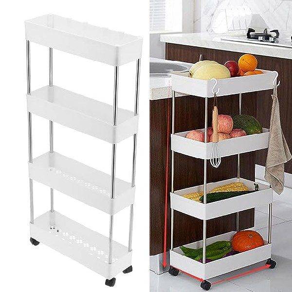 Carrinho de Arrumação Multifuncional com 4 Prateleiras