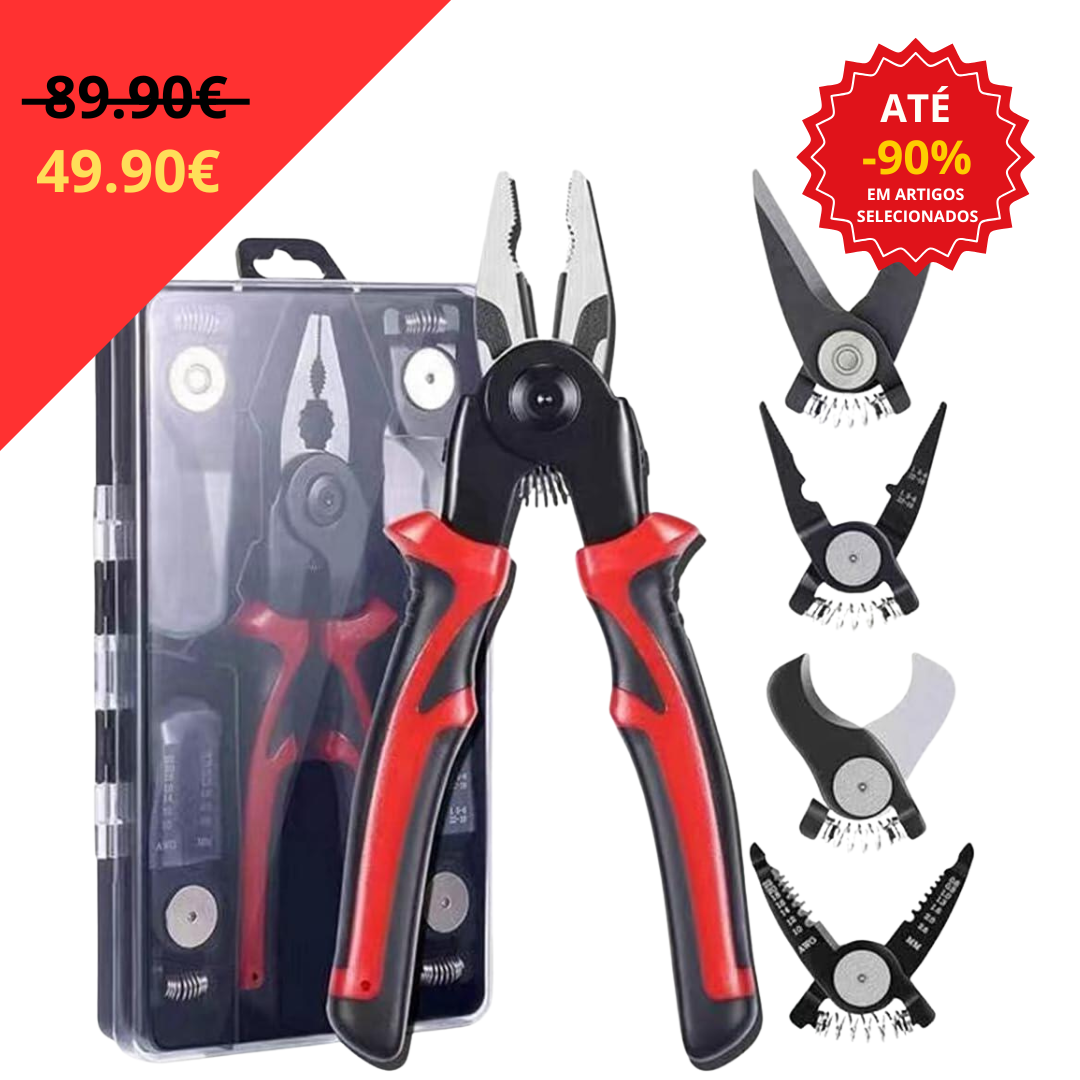🛠️ Alicate Multifuncional Elétrico com Cabeçais Intercambiáveis – Ferramenta 5 em 1