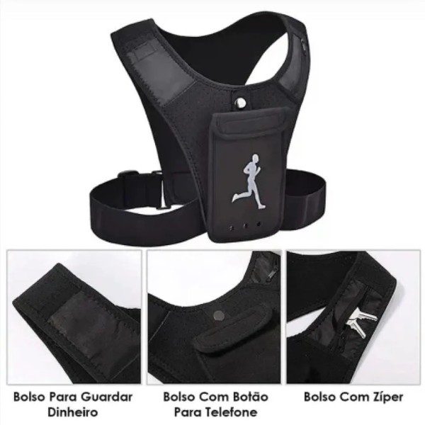 Confortável e leve, possui alças ajustáveis e um bolso projetado para guardar seu telemóvel. O bolso tem uma película transparente sensível ao toque pelo que permite usar o telemóvel sem precisar retirá-lo do bolso.