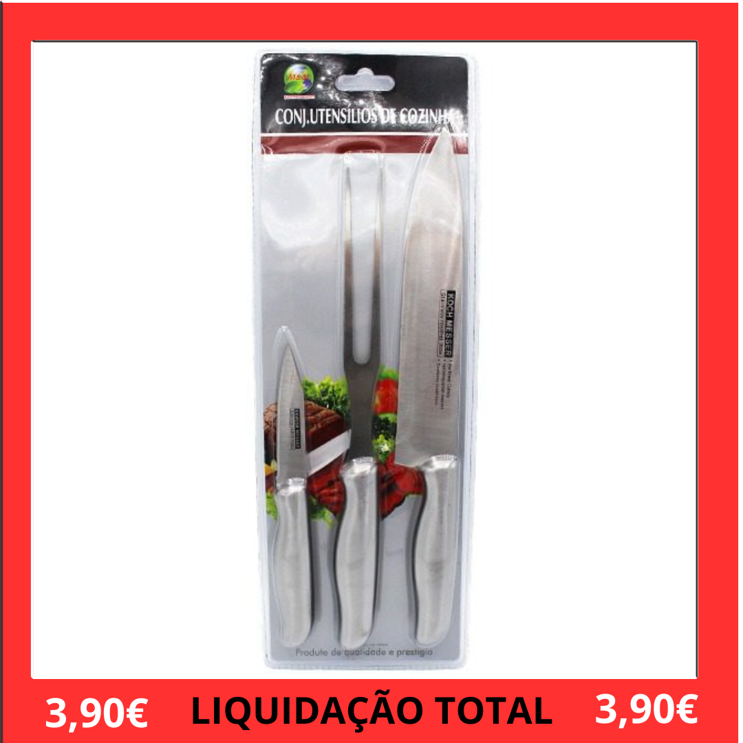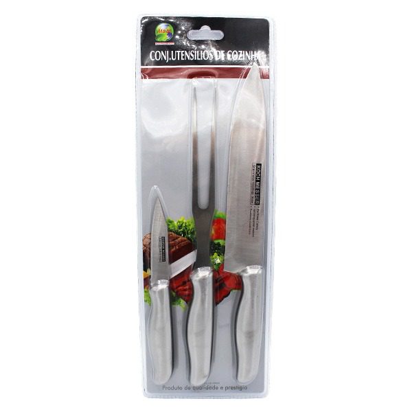 Conjunto 2 Facas + Garfo de Carne Aço Inoxidável