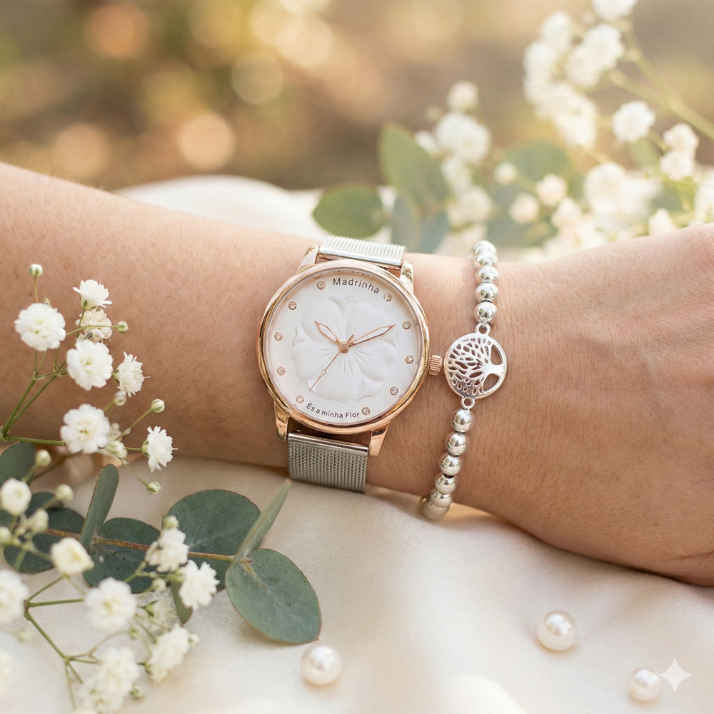 Relógio Madrinha És a Minha Flor em Aço