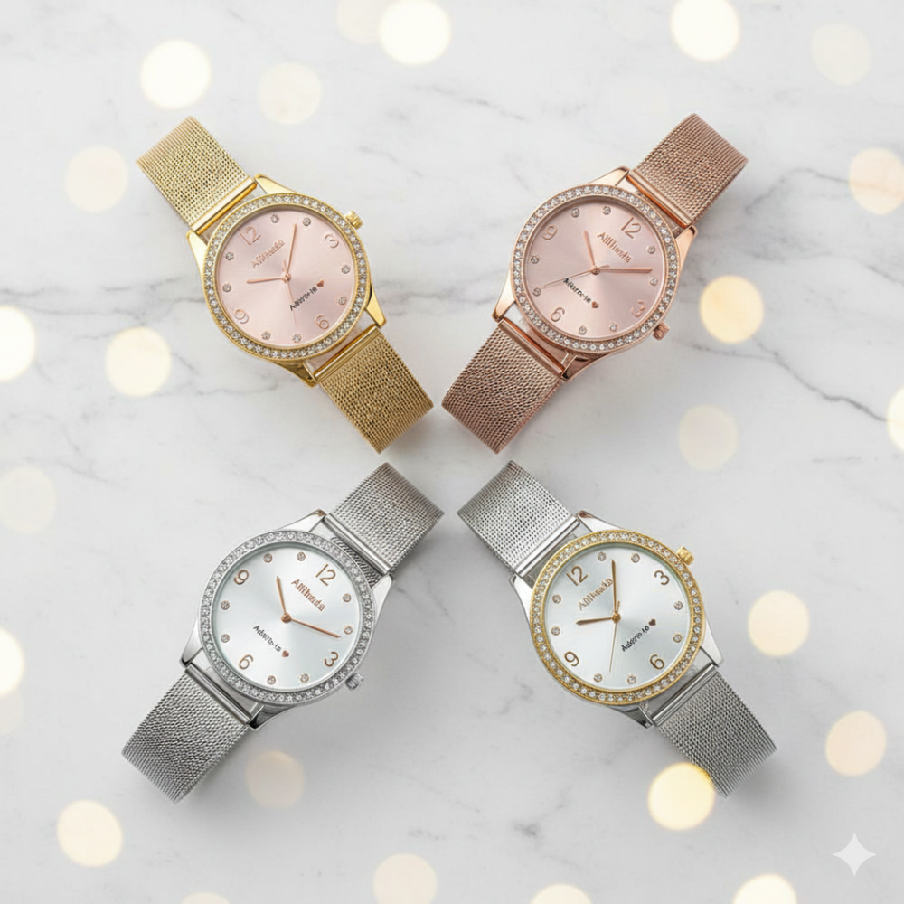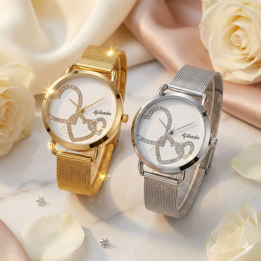 Relógio Afilhada 3 Corações em Aço