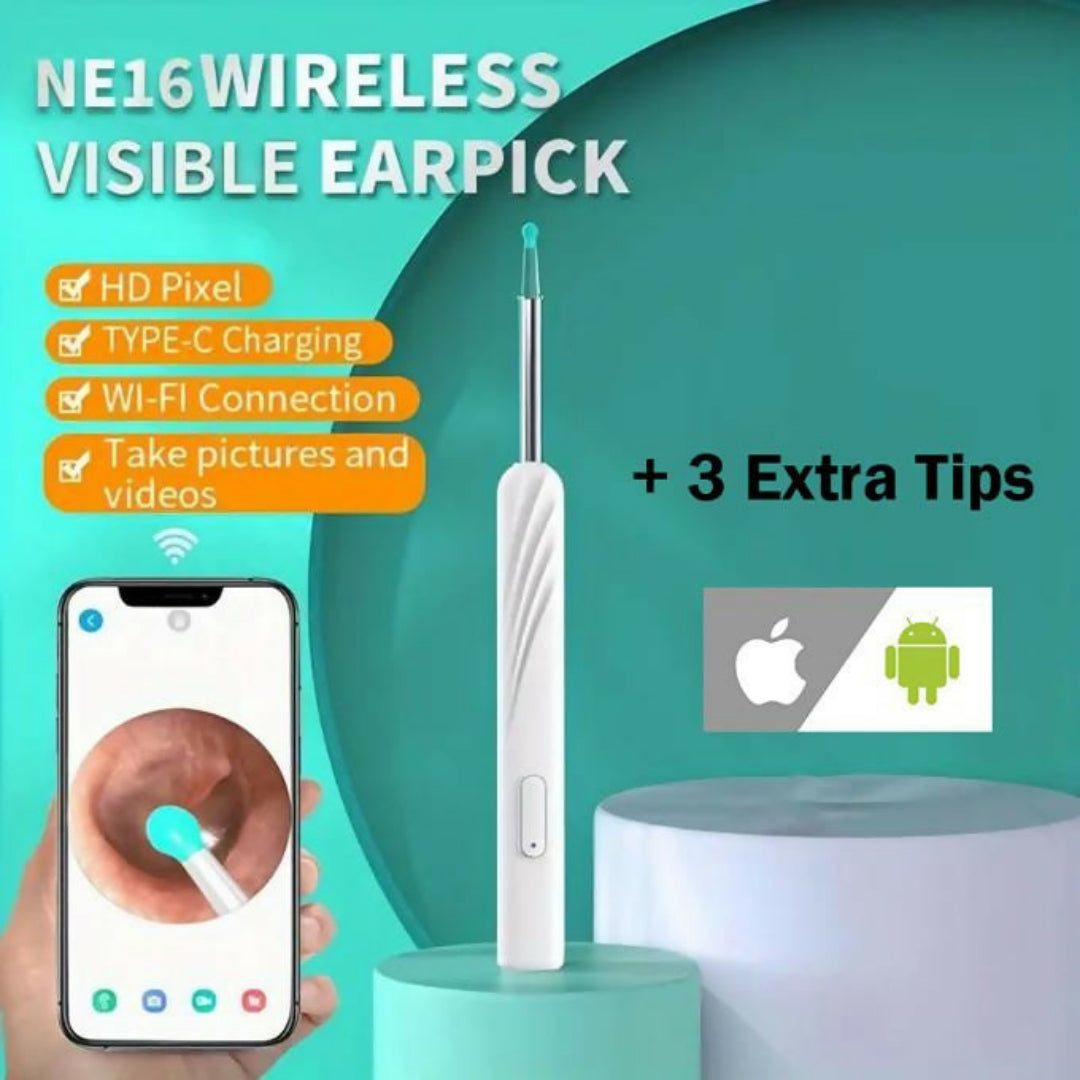 🦻✨ Limpeza de ouvidos segura e precisa com câmara HD integrada. Veja em tempo real e remova a cera sem risco — recarregável, confortável e fácil de usar.